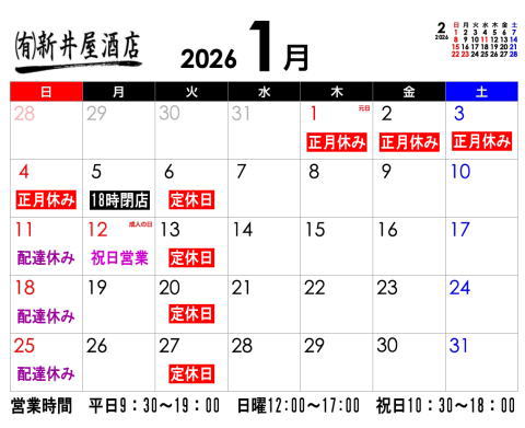 東京都板橋区にある地酒専門店 新井屋酒店のホームページです。 黒龍、菊姫、天狗舞、四季桜、出羽桜、三千盛、寒菊、喜久醉、臥龍梅、初亀、鶴齢、陸奥八仙、山本、手取川、明鏡止水 南部美人、喜楽長、きのえね、正雪、蓬莱泉、一念不動、開運、米鶴、尾瀬の雪どけ、墨廼江、富久長、酔鯨、南、常山、秀鳳 雁木、来福、阿櫻、七田、瀧自慢、国稀、月山、雪の茅舎、梵、ゆきの美人、今錦、中川村のたま子 花ノ文、肥前蔵心、貴、羽根屋、庭のうぐいす、姿、榮光冨士、玉柏、、積善、姿、菱湖、越弌 美丈夫、黒牛、古伊万里前、萩の露などなど取り揃えてお待ちしております。 |